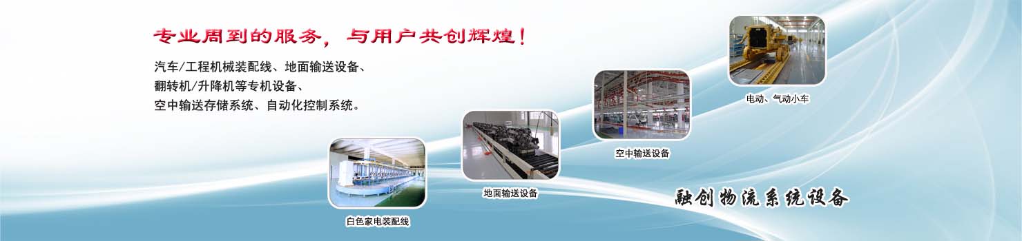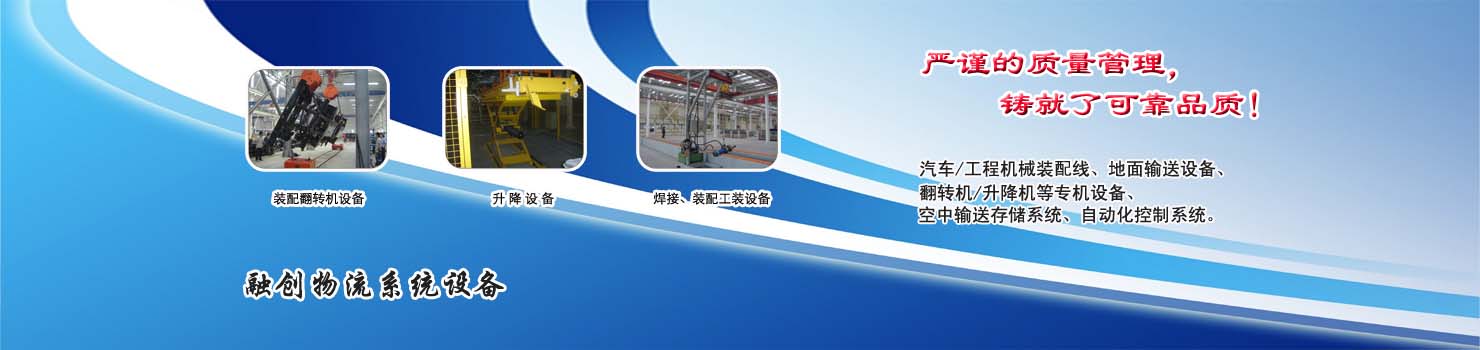 無(wú)錫市融創(chuàng)物流系統(tǒng)設(shè)備有限公司專業(yè)從事物流輸送設(shè)備、各類裝配流水線設(shè)備、各類生產(chǎn)非標(biāo)專機(jī)設(shè)備和自動(dòng)化控制系統(tǒng)的專業(yè)生產(chǎn)企業(yè)。廣泛應(yīng)用于轎車、卡車、客車、各類工程機(jī)械、發(fā)動(dòng)機(jī)、車橋、農(nóng)業(yè)機(jī)械、郵政、家電等行業(yè) ...... >> more >>